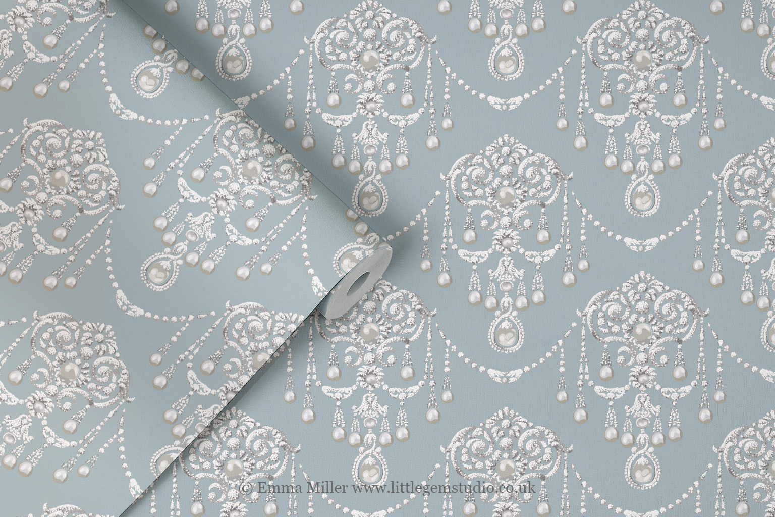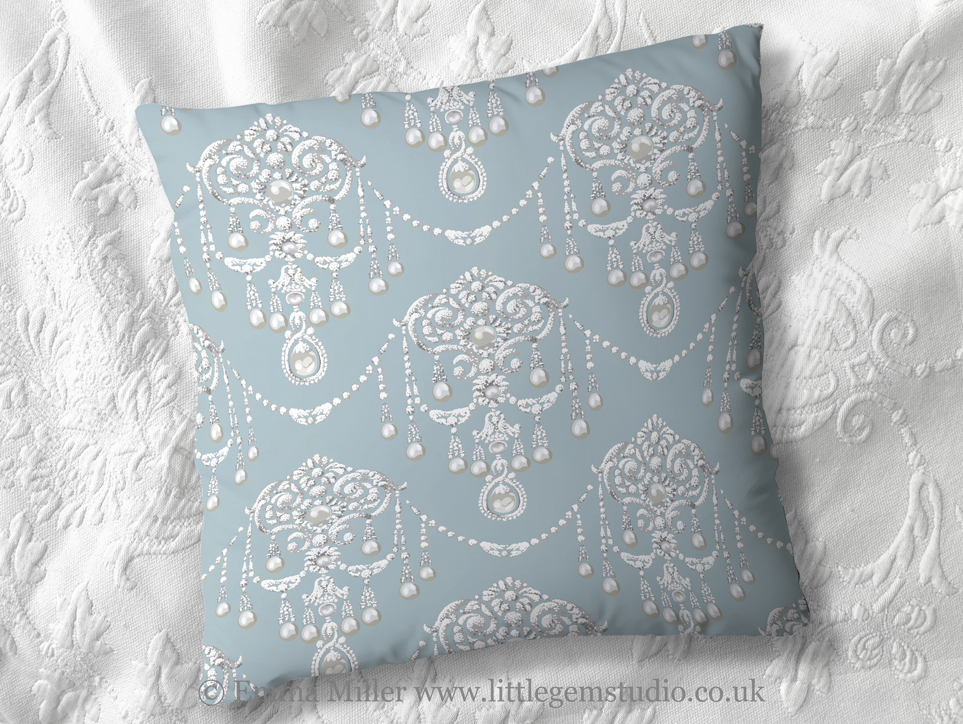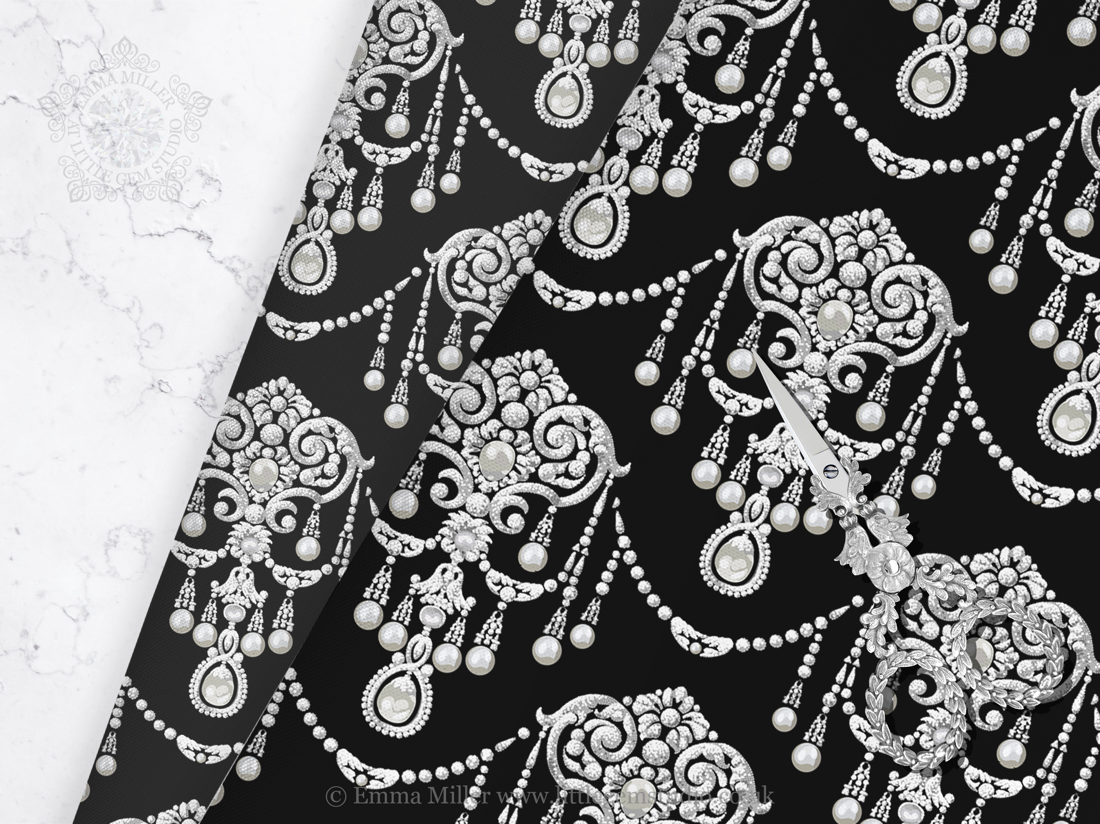 Okie dokie, I've drawn a whole collection of gorgeous vintage jewellery designs for fabric, because I love those old classic swirls and shapes like vintage Laura Ashley. But I needed unique Inspo, so I've been hunting down pictures of old vintage jewellery to revisit those old luxury shapes and motifs. I've named this one Pemberley, because what could be more opulent than Mr Darcy rising from the lake in Pride & Prejudice?! Oh I'm of the Colin Firth days, so I can't account for later adaptations, but it's a nod to discovering great literature via BBC drama! As always, it can come in any colour you dream of, just let me know! Em x