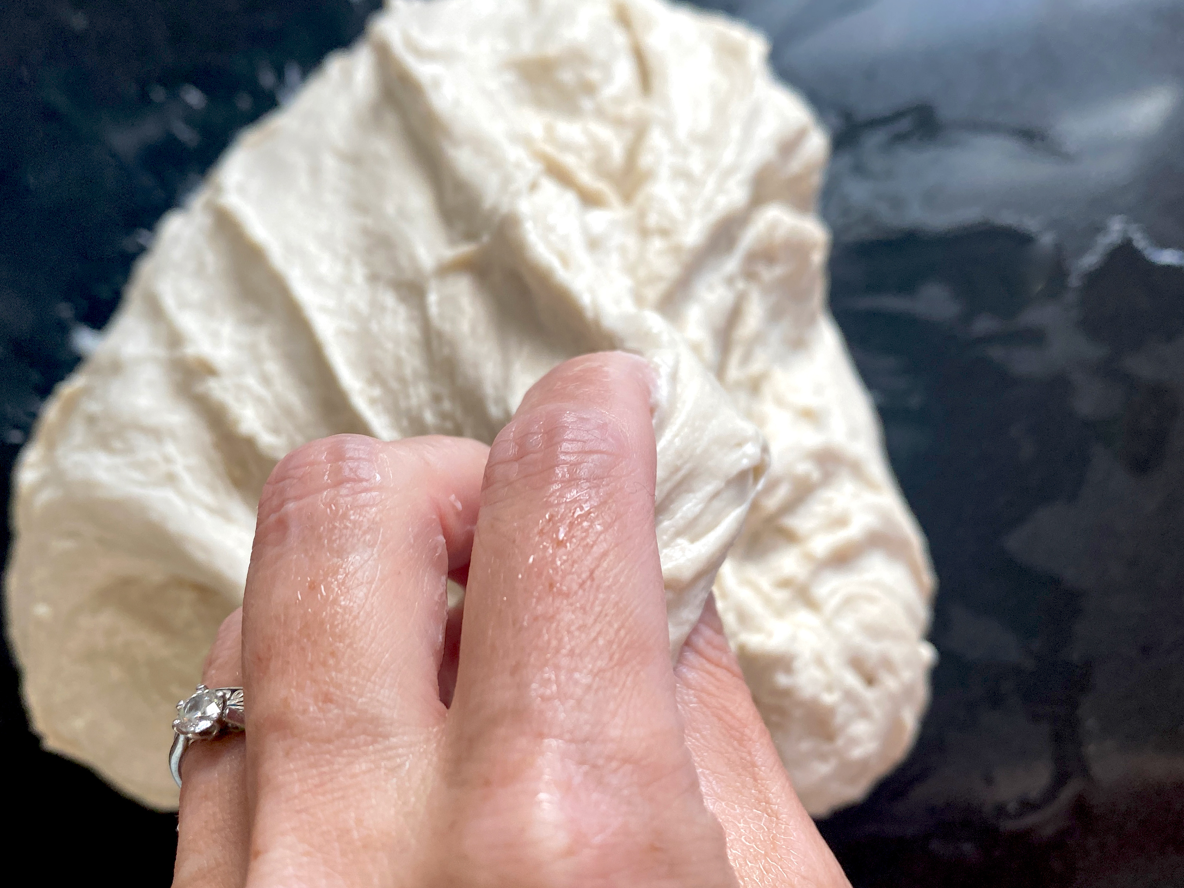 Keep your hands wet to prevent the dough sticking to you.