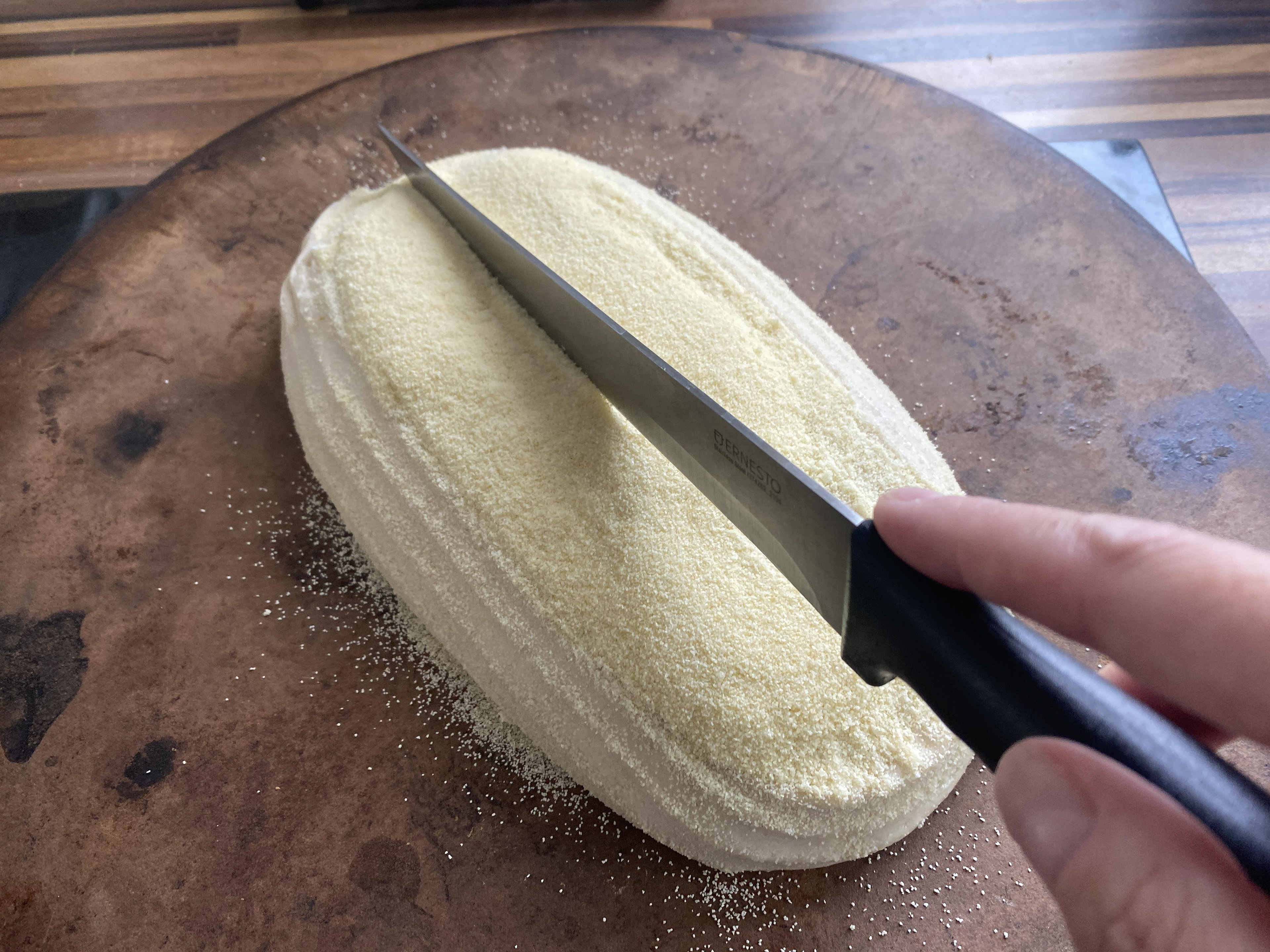 Doesn’t matter if it’s untidy, this will be the bottom of the loaf!