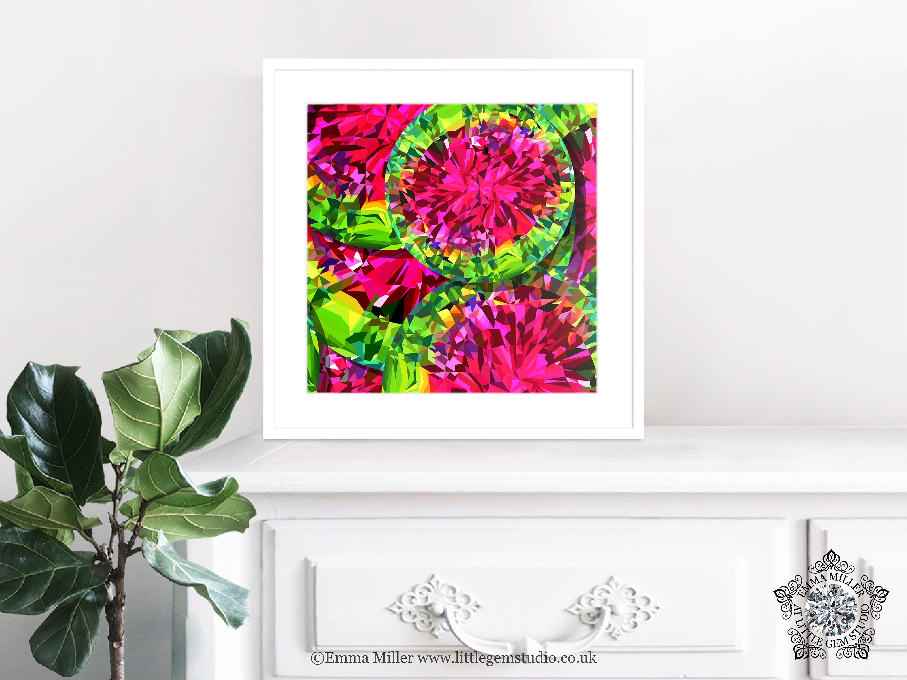 See my Gemstone Collection for more dazzling jewels. This collection is hand drawn with Apple Pencil in vector format which means it's infinitely scaleable. I can print it in any size from postcard to billboard, and on fine art paper, canvas or glossy acrylic. The art can be the original gem, or a seamless pattern on prints, fabrics and wallpapers. Just ask and I'll find the best for your requirements!
